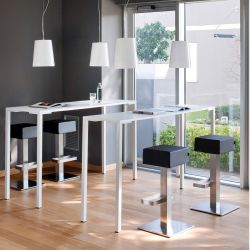 Dieser quadratische und schlichte Stehtisch eignet sich für die Einrichtung von Bars oder Restaurants.