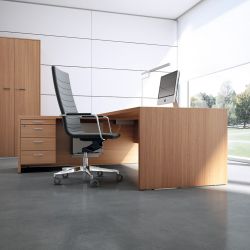 Dieser Chefschreibtisch hat ein schlichtes Design und ist ein kompletter Arbeitsplatz für das Büro.