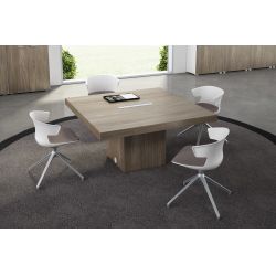 Das Grundmodul dieses Besprechungstisches ist quadratisch 140 x 140 cm; Durch Hinzufügen weiterer Module erhalten Sie Tische in verschiedenen Größen (L x B x H):