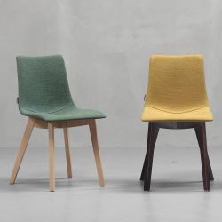 Das Buchenholzgestell ist in den Farben natur, gebleicht oder wengè erhältlich. Die Schale mit Antishock-Polycarbonatkern ist gepolstert und mit einer Vielzahl von Bezügen erhältlich: