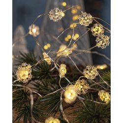 Diese LED-Lichterkette eignet sich perfekt für die Dekoration des Hauses während der Weihnachtsfeiertage. Es besteht aus einem farbigen Metalldraht (grün oder silber) mit 40 Lichtpunkten.