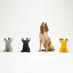 Die undurchsichtige Polyethylenstruktur mit einer skulpturalen Hundesilhouette beherbergt im Inneren eine praktische Schüssel aus geformtem Aluminium, die sich leicht herausnehmen und reinigen lässt.