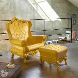 Komplett aus recycelbarem Polyethylen, der durch das Rotationsgussverfahren gefertigt wurde. Dieser designer Sessel zeichnet sich durch Details und Verzierungen im Barockstil aus.