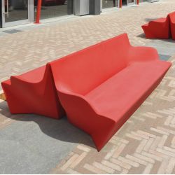 Dieses designer Sofa ist durch Rotationsverfahren aus recyclebarem Polyethylen gefertigt und steht in einer größen Farbauswahl zur Verfügung: sowohl in den Basisfarben, die sich durch eine leicht raue Oberfläche auszeichnen, als auch in den lackierten Farben mit einer glatten Oberfläche, mit glänzenden oder matten Ausführung.