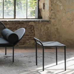 Als Hocker geboren, kann er auch als Couchtisch verwendet werden, kombiniert mit dem Sofa aus derselben Kollektion.