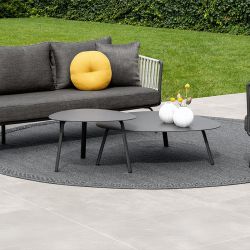 Design-Couchtisch, zeichnet sich durch seine ursprüngliche Form aus: ein weiches Dreieck wie ein Kreis. Milo T2 ist vollständig aus lackiertem Aluminium gefertigt, was eine maximale Widerstandsfähigkeit gegen schlechtes Wetter gewährleistet.