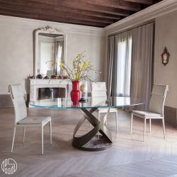 Auf Anfrage ist der in Italien gefertigte Tisch auch mit einer transparenten, extraklaren oder transparenten, rauchgrauen Glasplatte erhältlich. Kontaktieren Sie unseren Kundenservice für weitere Informationen.