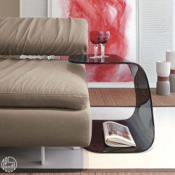 Elegant und mit Design ist dieser Beistelltisch aus gebogenem Glas in Transparent-Rauchgrau, Transparent oder Transparent extrahell erhältlich.