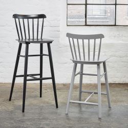 Die Rückenlehne besteht aus sieben kleinen Holzstäben, die gleichmäßig in einer harmonischen Komposition verteilt sind. Erhältlich ist dieser Holzhocker in Buche natur, gebeizt oder in verschiedenen Farben lackiert oder in edlem Eichenholz.