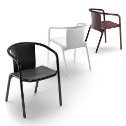 Leicht und widerstandsfähig, dieser moderne Stuhl mit Aluminiumgestell und Sitz aus wiederverwertbarem Polypropylen ist perfekt sowohl für die Innen- als die Außeneinrichtung.