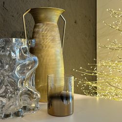 Crafted from glass with a gold finish, it reflects light with a touch of sparkle. Ideal as a decorative object or as a refined gift for any occasion.