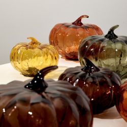 Amber is a decorative glass pumpkin, equipped with integrated warm light microLEDs .