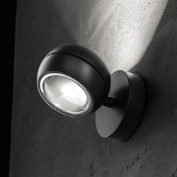 Wall lamp with clean and refined design. Nautilus Mini is made with light sphere which rotates on its own axis passing through the matt varnished metal structure.