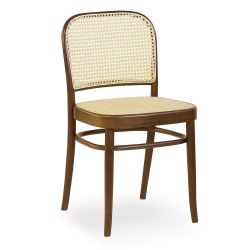 The bent beech wooden frame has a backrest made from a single piece with the rear legs. The cane backrest is matched with wood, Vienna straw or padded seat. Different coverings are available: