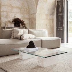 Mineral was born from the union between marble and glass. With a light and elegant design, this coffee table is perfect for decorating the living room area of a holiday home or in places with mild temperatures.