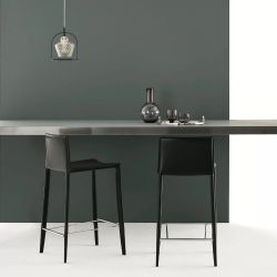 The stool has a very essential design, with a thin seat that folds and becomes a low and comfortable backrest. Perfect for elegantly furnishing the kitchen or the corner bar of the house.