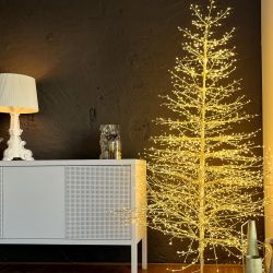 The branches, embellished with dense , fixed LED lights , are flexible and can be opened and shaped as desired. The LED lights emit a warm light . A stable round base completes the structure.