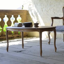 The legs are made of beech wood while the oval top is in mdf veneered in beech essence.