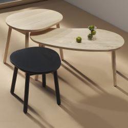 Three irregularly shaped surfaces in solid ash with thin legs, can be used individually or in groups.