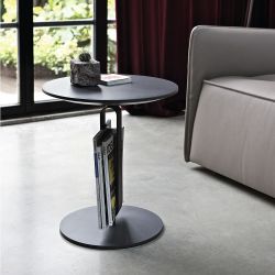 Modern round coffee table perfect for the living room. Its base is made of lacquered steel available in different colours, shaped to store books and magazines. This makes this small tale a contemporary and very useful object.