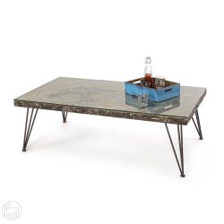 The peculiarity of this design coffee table is the top, made of MDF and embellished with an elaborate three-dimensional cement decoration , which creates the design of the earth's planisphere. A transparent glass plate covers and protects this beautiful decoration.