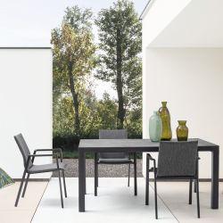 With a modern and clean design, this chair with armrests is perfect for decorating the outdoor dining room. The structure is made of anthracite gray painted aluminum, while the seat is padded with Fast dry foam and covered in mixed textilene fabric, materials suitable for outdoor use.