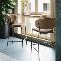The Desy stool stands out for the enveloping comfort of the backrest, which extends to the seat, offering elegant and natural support.