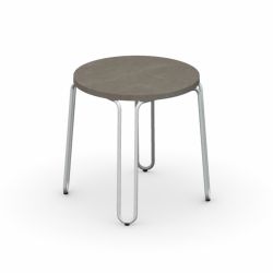 This coffee table has a structure in treated and painted metal rod for outdoor use. The top, on the other hand, is available in HPL laminate.