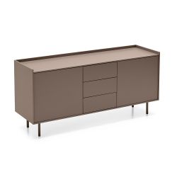 The sideboard has three drawers and two doors with push&pull opening system. Inside the container there is a tempered glass shelf.