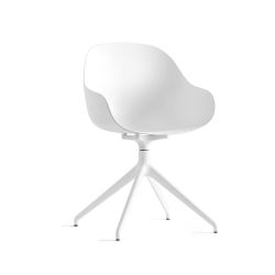Academy is available in a swivel version, up to 360°. The frame is made of matt varnished metal, while the seat with armrests is made of polypropylene, available in various colours.
