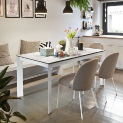 Modern table measuring 160 x 85 cm, extendable to 220 x 85 cm. Its practical "rotation" extension system allows it to always keep the legs at the perimeter in order to exploit the entire length.