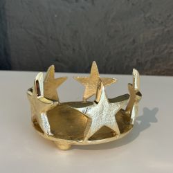 Made entirely of metal with a silver or gold finish, this original candle holder is composed of a crown of three-dimensional stars surrounding the base.