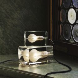 An original and innovative table lamp that plays with contrasts: Block is made up of two hand-fused glass blocks, inside which is the LED bulb. Perfect as a reading lamp, on a bedside table or in the entrance, Block is available in two sizes (L x W x H):