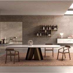 Luminous, precious, and seductive, Cosmopolitan Ceramics captures the eye with a bold and sophisticated visual impact. The top, made of fine ceramic-effect stoneware, available in a glossy or matte finish, is elegantly set in solid wood with a textured oak finish.