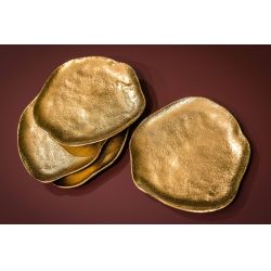 Bread plate with irregular edge. Made of aluminum in gold finish, diameter 16 or 30 cm.