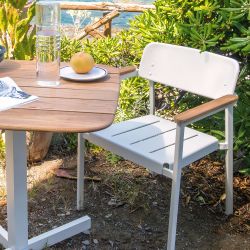 Made of aluminium, Shine P is presented in a wide color range. The armrests finished in teak make this modern armchair more welcoming. The Shine armchair is also available with a wooden seat.