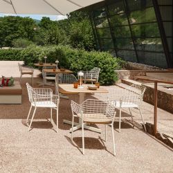 Original and contemporary style for this metal armchair, characterised by unusual backrest in wire mesh.