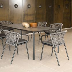 The Nef armchair combines eclectic style and visual lightness with a solid aluminum and rope structure that recalls the graphic design of hot air balloons.