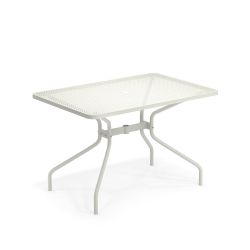Ideal for meeting various furnishing needs, this painted steel garden table features a rectangular expanded metal top with a central hole for an umbrella.