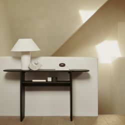 Console with elegant, refined lines that are inspired by the irregularity and at the same time the geometry and perfection of stones. With organic and simple shapes, it is embellished by the detail of the drop-shaped leg that blends with the top.