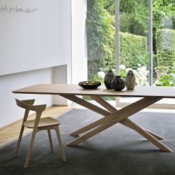 Mikado stands out for its base: an original crossed movement of the legs, inspired by the Japanese game of mikado, which acts as a solid base for the large rectangular top.