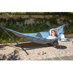 Comfortable freestanding Fatboy hammock, perfect for relaxing in the garden or by the pool. Headdemock Superb is a two seater hammock and can support up to 150kg of weight.