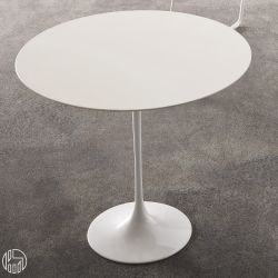 The round small table top is made of laminated "Compactop", white fullcolour.