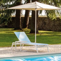 The frame is made of painted aluminum , while the armrests are made of teak . It is available in two versions: