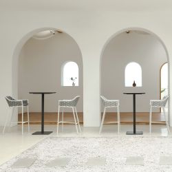 Panama SG is a comfortable and enveloping outdoor stool, equipped with armrests. Perfect for setting up the counter area in the garden.