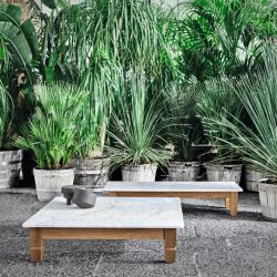 Suitable for outdoor use, it is made of ECOTeak, wood from the island of Java, cut to size and sanded to highlight its natural grain. The final polishing is done by hand with hemp cloths and shavings.
