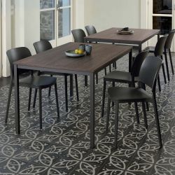 The aluminum-finished frame gives the table a linear and light look, making it easy to combine with different seating styles.