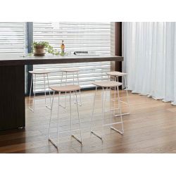 The frame is made of steel rod, available varnished or chromed in black or copper colour. The seat is offered in polypropylene or ash solid wood.