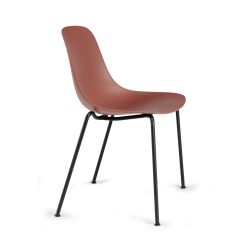 The 4-legged metal frame is available in a painted version and is paired with a polypropylene shell, available in various colors. The chair is available with or without armrests .