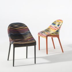 The Eleganza armchair has soft lines and a sophisticated design, which make it perfect for furnishing the dining area. In this new version, the armchair has a Missoni patterned upholstery, combined with a recycled technopolymer structure.
